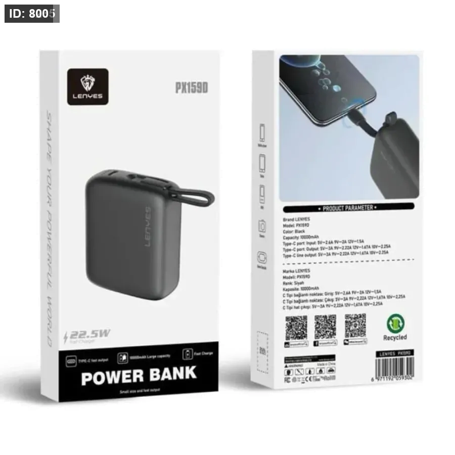 المخرج (Output): من Type‑C المدمج (أو السلك المدمج) بنفس المواصفات تقريباً مثل المدخل عند الخروج، لدعم الشحن السريع