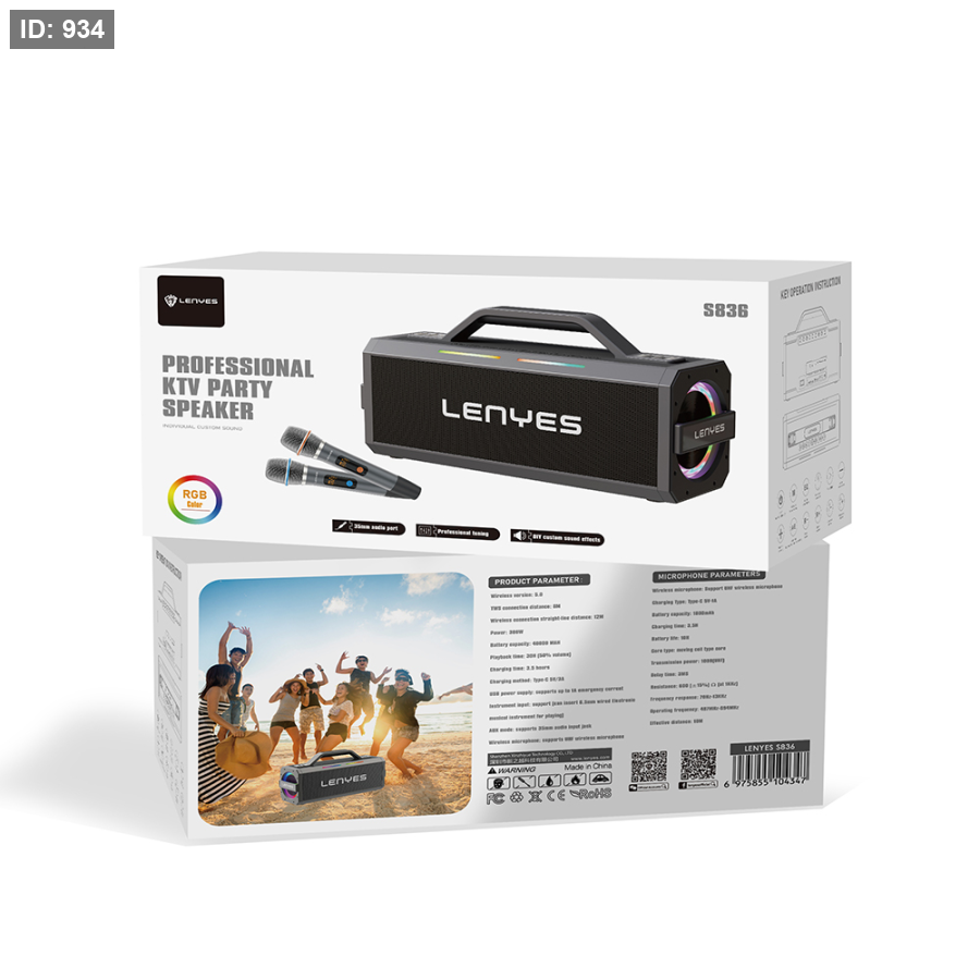 إمكانيات إضافية: ريموت تحكم 433MHz، ميكروفون لاسلكي UHF، دعم RGB LED للإضاءة، وضعيات bass قوية ووحدات صوت متعددة داخل السماعة