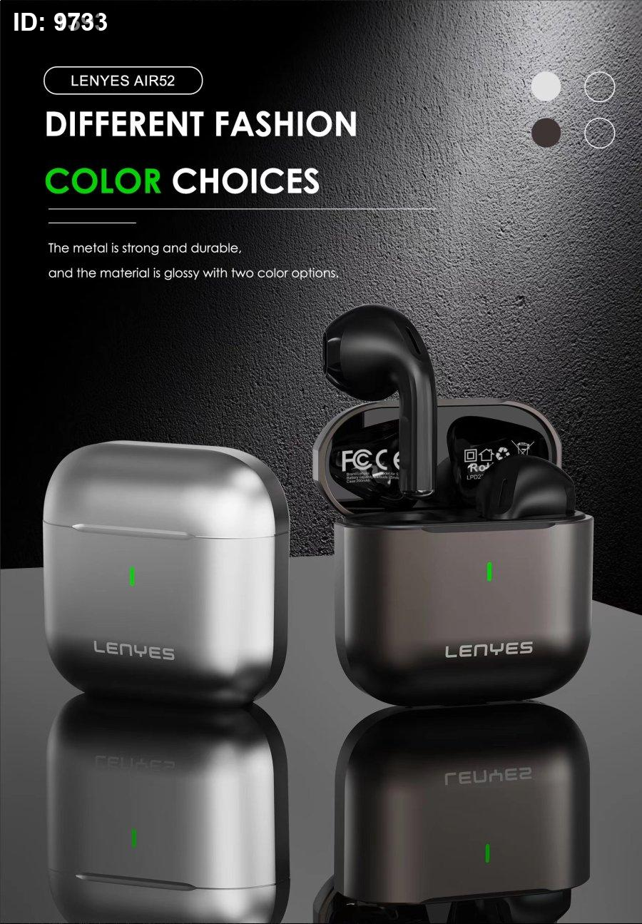 سماعات LENYES AIR52 هي سماعات لاسلكية بتصميم عصري وجودة صوت عالية، تجمع بين أداء قوي وراحة في الاستخدام اليومي. تتميز بصوت نقي وجهير قوي، مع اتصال سريع ومستقر عبر تقنية البلوتوث. تدعم بطارية طويلة تدوم لساعات، مع علبة شحن صغيرة وسهلة الحمل. مناسبة للمكالمات، الرياضة، والاستماع للموسيقى بجودة ممتازة.
